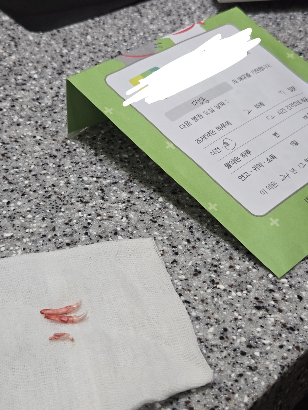 수술은 전신마취로 진행되었고 다행히 큰 문제 없이 2~3시간만에 마무리 되었습니다.